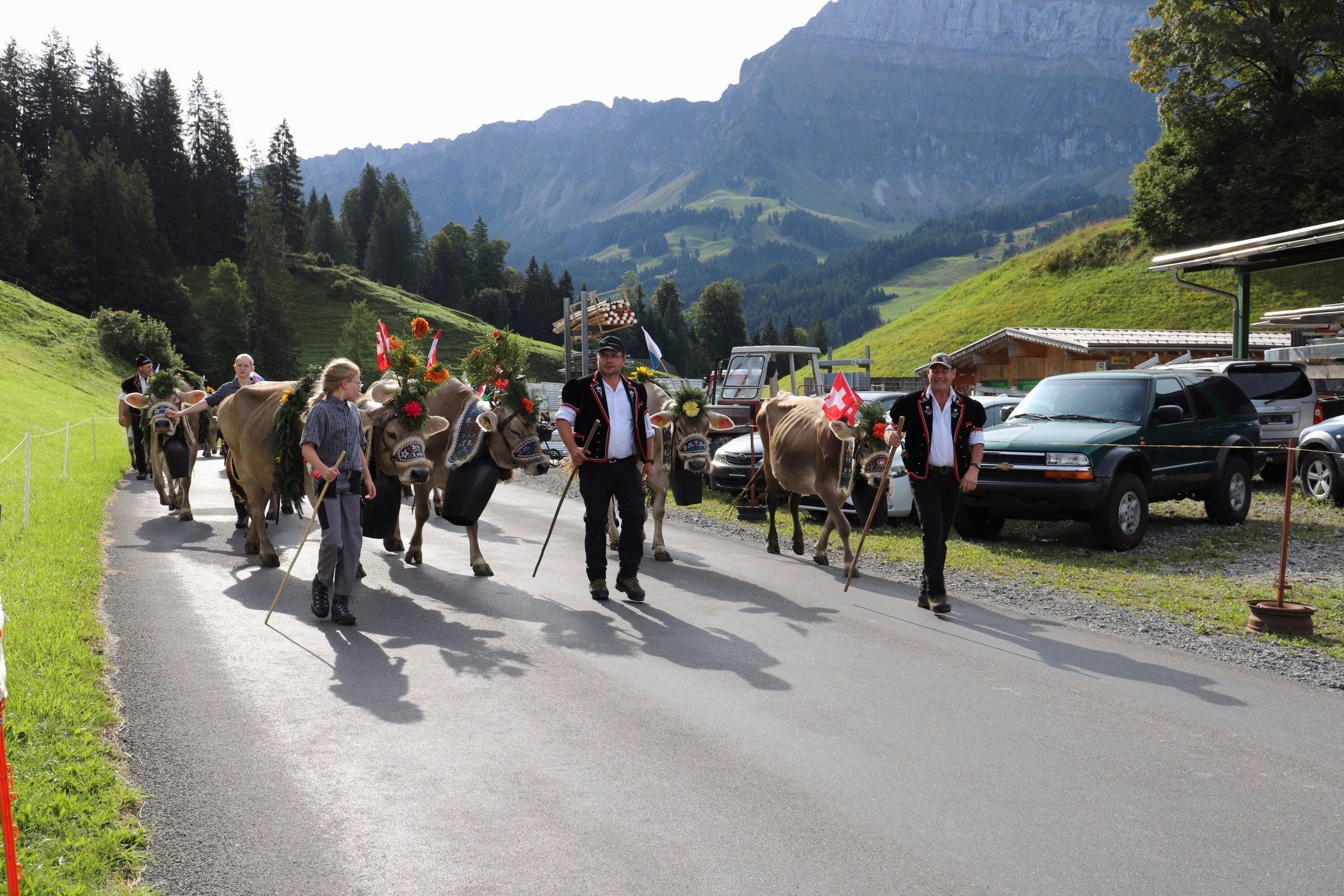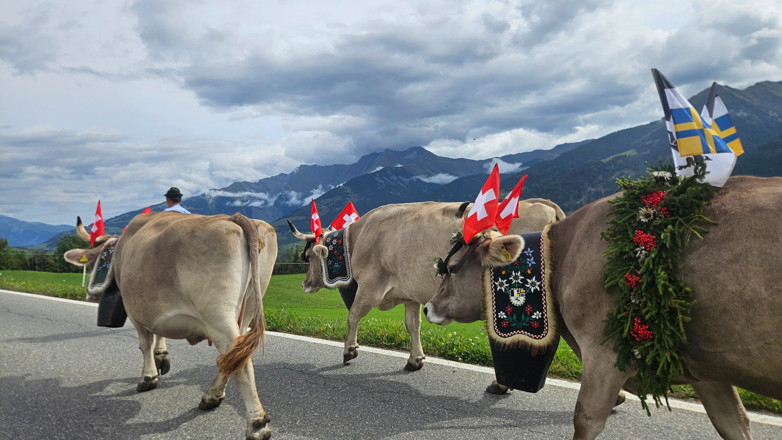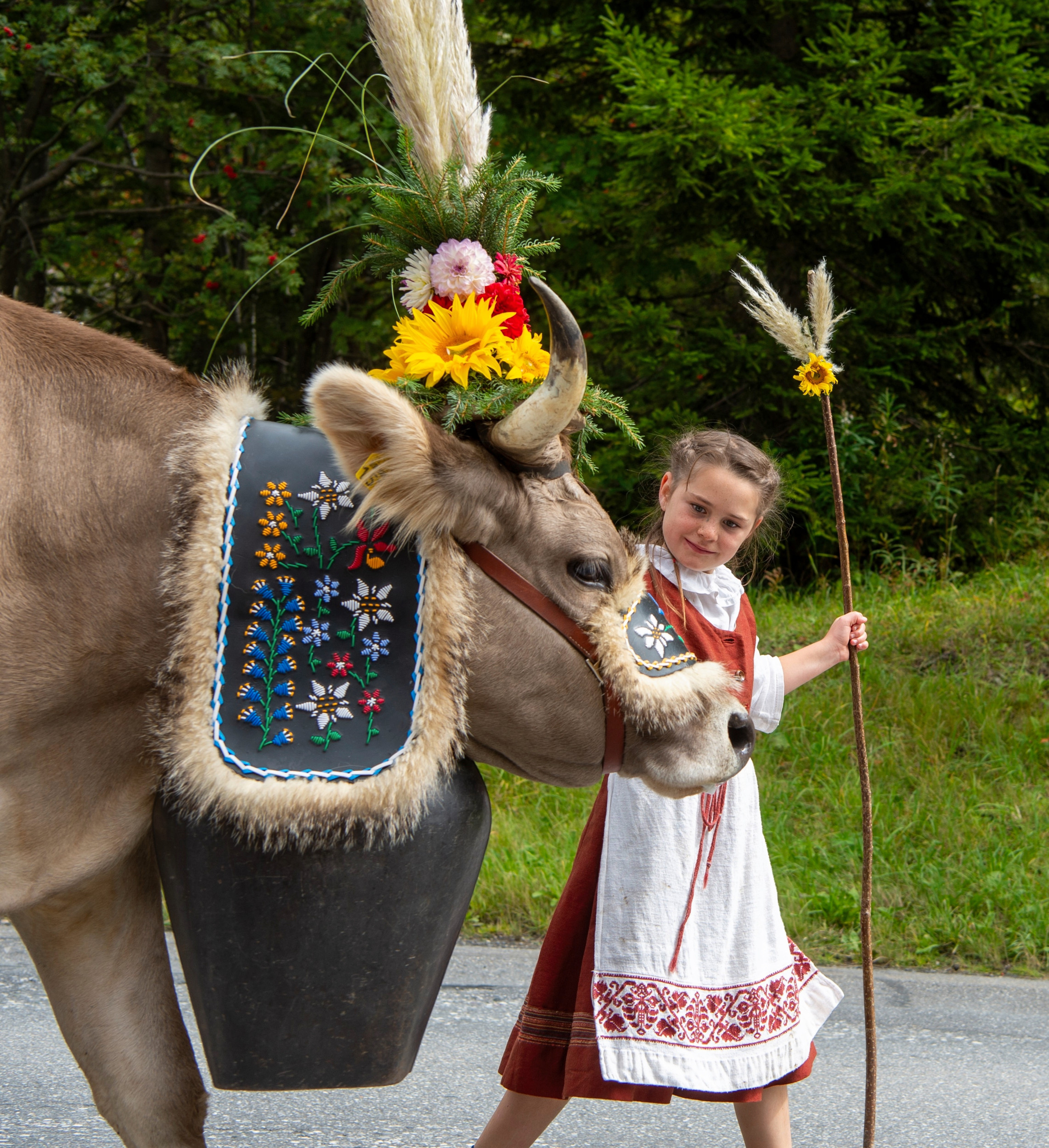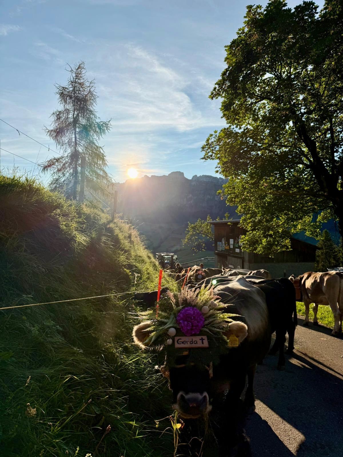 Die Alpabfahrt ist ein traditionelles Ereignis in vielen Alpenregionen, bei dem Kühe, Ziegen oder Schafe nach dem Sommer auf den Bergweiden ins Tal zurückkehren. Die Tiere werden festlich geschmückt mit Blumen, Kränzen und Glocken, während die Bauern in Tracht begleiten.