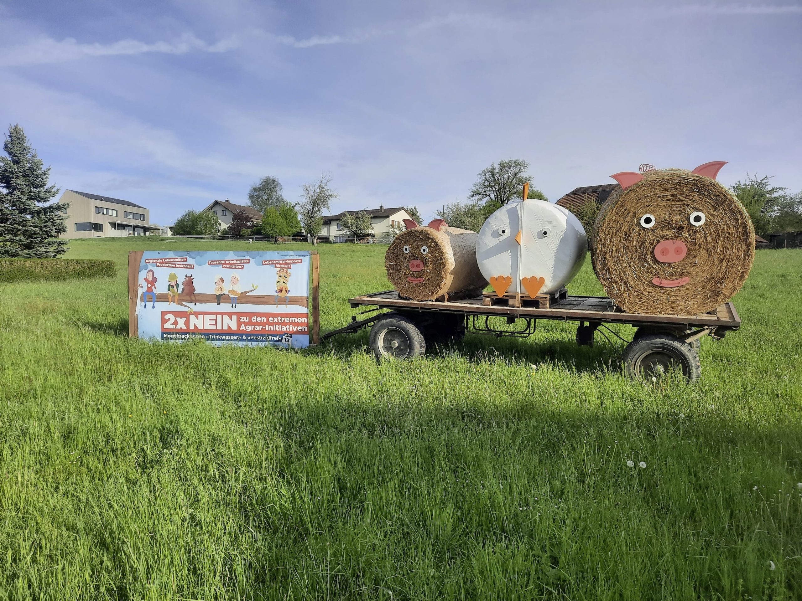 Eine Annahme der Agrarinitiativen am 13. Juni hätte gravierende Folgen für die Schweizer Landwirtschaft. Deshalb legen sich aktuell viele Bäuerinnen und Bauern ins Zeug und fertigen aufwendige und auffällige Kreationen an, um die Bürgerinnen und Bürger zu sensibilisieren, im Juni ein doppeltes Nein in die Urne zu legen. Für unseren Bildwettbewerb haben wir das originellste Sujet gesucht.