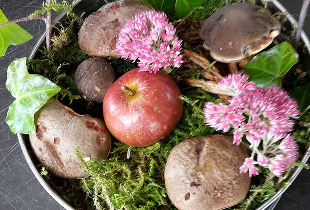 Aus dem Pilz-Segen hat Monika Fritischi eine herbstliche Dekoration kreiert.