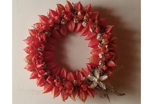 Herbstlicher Kranz aus Lampionblumen (Latärnli).