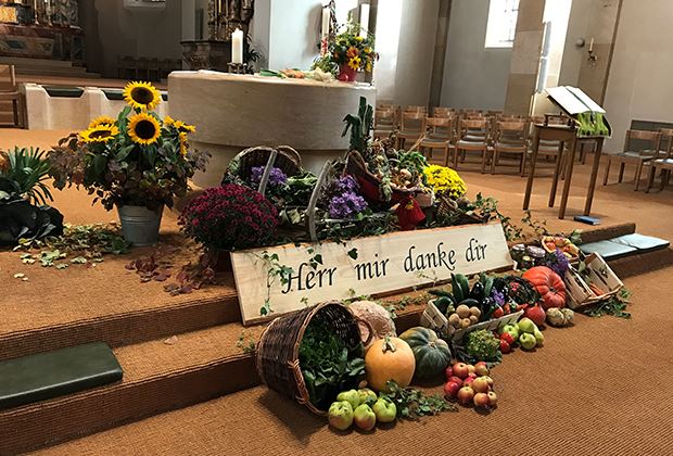 Anlässlich des Erntedankfestes wurde die Kirche in Mümliswil SO herbstlich dekoriert.