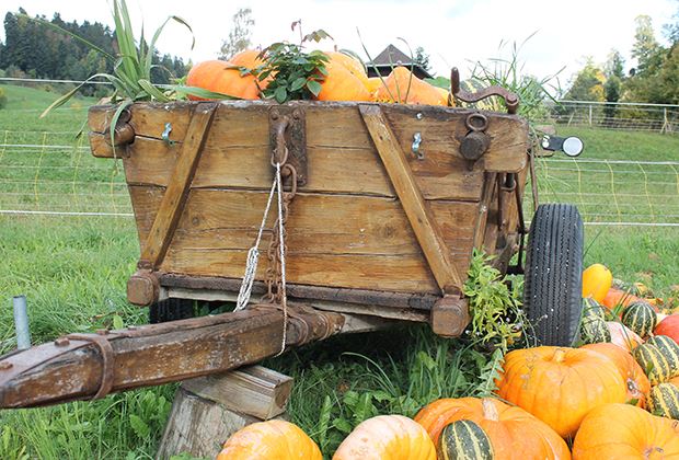Dieser herbstliche Kürbis-Karren steht am Wegrand im Kurzeneigraben bei Wasen BE.