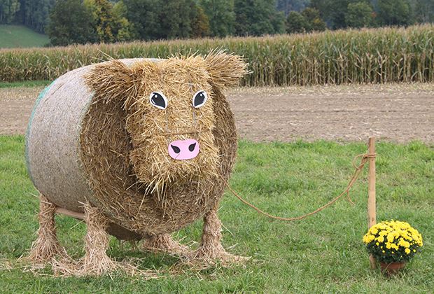 Diese Strohkuh begrüsst die Besucher beim Schloss Sumiswald BE.