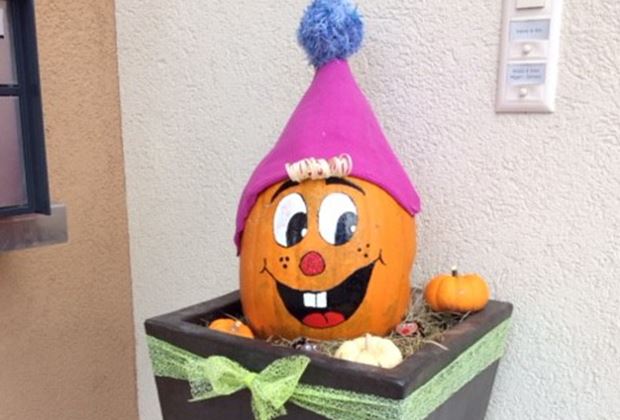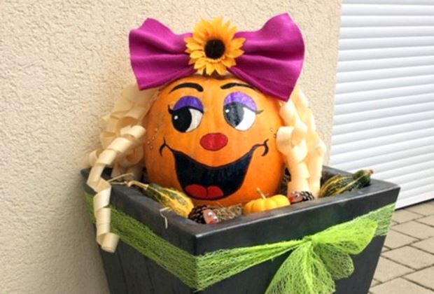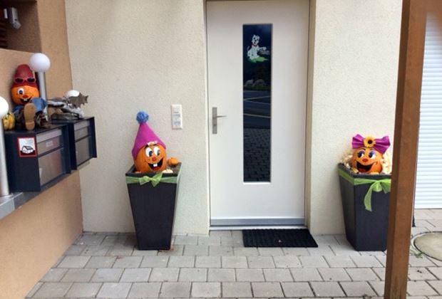 ...dem Kürbis-Mädchen auf der anderen Seite des Hauseingangs.
