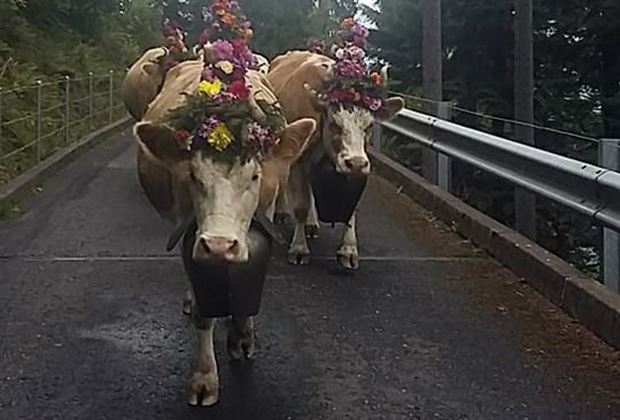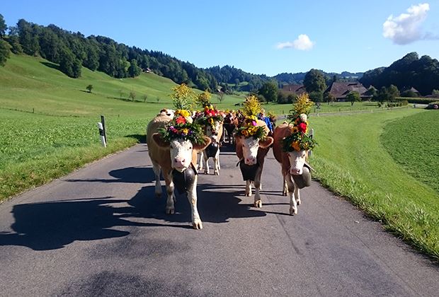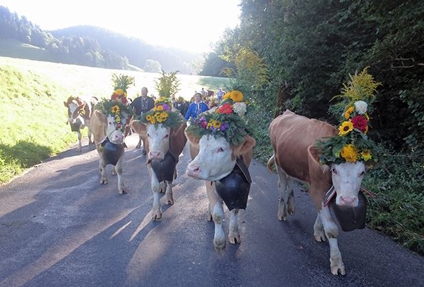 Zahlreiche wunderschöne Aufnahmen mit geschmückten Braunviehkühen haben uns erreicht. Sehr eindrücklich ist die Art und Weise, wie die Traditionen mit Blumenschmuck, «Chlepfä» und Flaggen immerzu weitergeführt und gepflegt werden. Auch zu erwähnen sind die schönen Alpabzüge mit Kühen, Ziegen und Schafen.