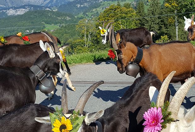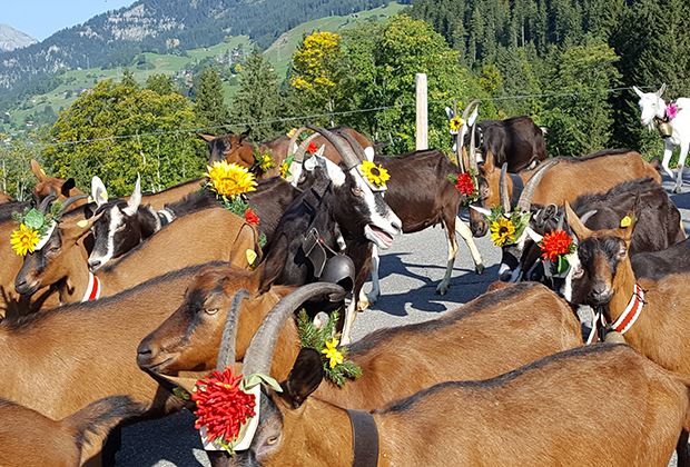 Mit viel Liebe wurden die Ziegen für den Alpabzug geschmückt.