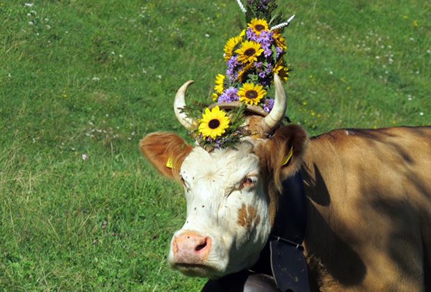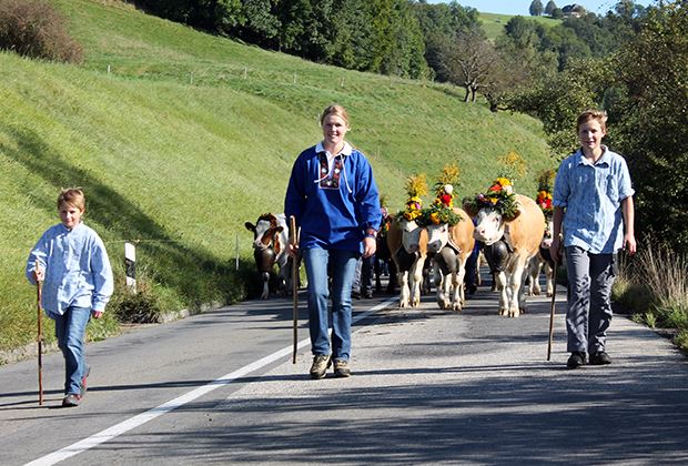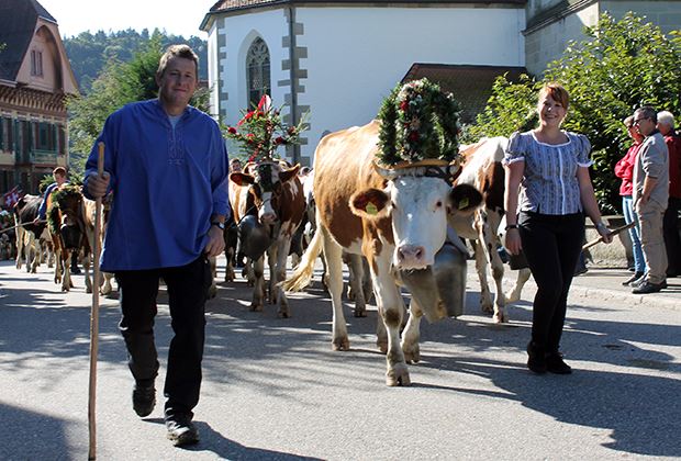 Stolz tragen Jutzis Kühe die Treicheln und den aufwändigen Blumenschmuck.