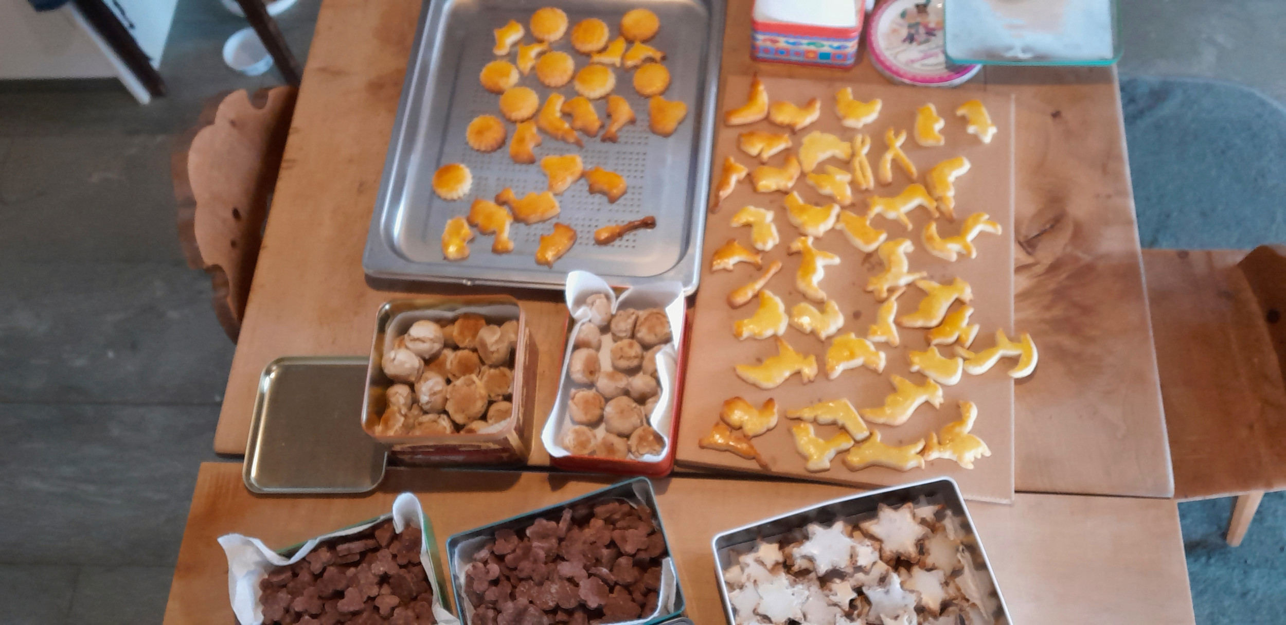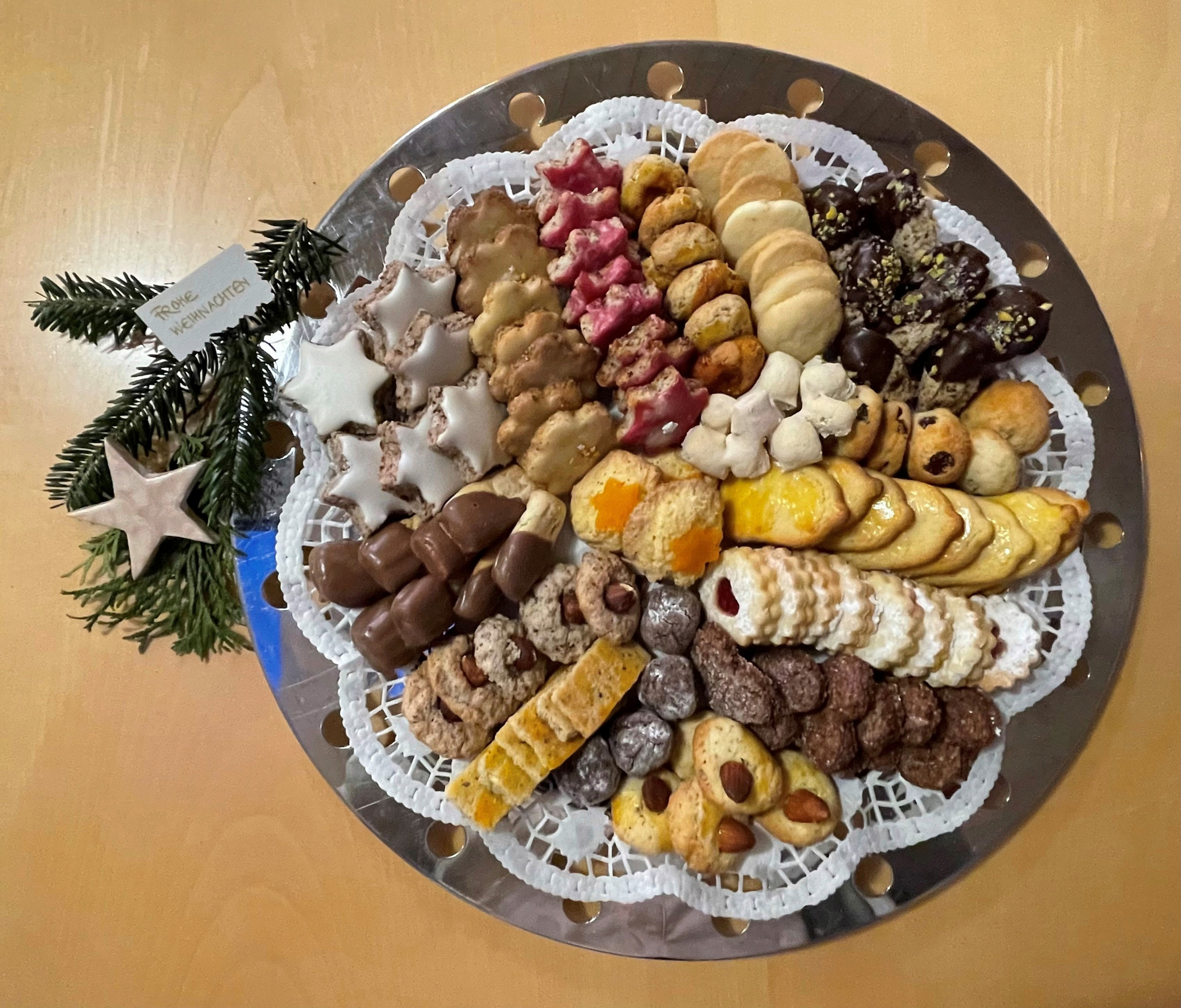 Die exakten und schönen Guetzli von Annagret Herrmann aus Oey BE sehen sehr gluschtig aus. Die natürlichen Tannzweige, die Teetassen und die gefilzten Krippenfiguren geben ein sehr stimmiges Bild ab. Auch ganz originell finden wir die Einsendung von Ulrich Kämpf aus Le Brassus VD, der mit seinen Guetzli eine schöne Botschaft verfasst hat.