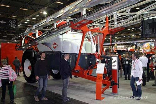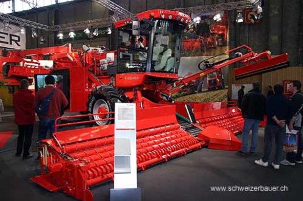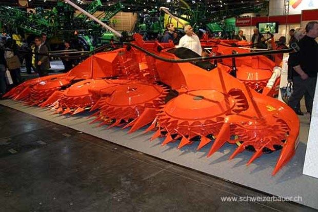 Branntneu hat Kuhn auch Pressen im Programm. Monosem zeigt ihre Lösung zum Absagen der Vakuumluft bei den Maissämaschinen. Mc Cormick konnte unterandern den neuen CX mit dreistufiger Lastschaltung präsentieren. Erstmals hatte auch Holmer eine Verlademaus auf dem Stand. Auch der neue Schmalspurtraktor von Fendt konnte besichtigt werden. Endlich präsentiert New Holland den langersehnten T7000 stufenlos. Die Joystick vom neuen stufenlosen T7000 von New Holland stammt aus dem Feldhäcksler. Der Boomer von New Holland hat einen stufenlosen Antrieb mittels eines Kettenwandlers. Der Wasserstofftraktor NH2 von New Holland war auhc an der Sima. Klein aber Oho sagt sich Merlo und zeigt einen kleinen Teleskoplader als Prototyp. Manitou testet mit dem Manitrac das Besucherinteresse an diesem Maschinenkonzept. Kürzlich hat Kuhn den französichen Pflanzenschutzspritzenhersteller Blanchard übernommen. Der bereits an der Agritechnica als Prototyp gezeigte stufenlose Deutz Fahr nimmt langsam Gestalt an. Der erste Axialmähzdrescher von Deutz Fahr konnte ebenfalls an der Sima besichtigt werden. Kemper hat einen neuen achtreihigen Vorsatz mit grossen und kleinen Einzugstrommeln. Breite Maschinen und kurze Röcke passen auf dem Stand von Hatzenbichler gut zusammen. Der engliche Hersteller JCB erweitert seine Traktorenbaureihe 7200 jetzt bis zu 260PS. GNK Walterscheid präsentiert einen Schnellkuppler für die Zapfwelle. Er soll Kräfte bis zu 18000 Nm übertragen können. Auch New Holland will bei den nachwachsenden Rohstoffen mitmischen und zeigt einen Häckslervorsatz für Holz.
