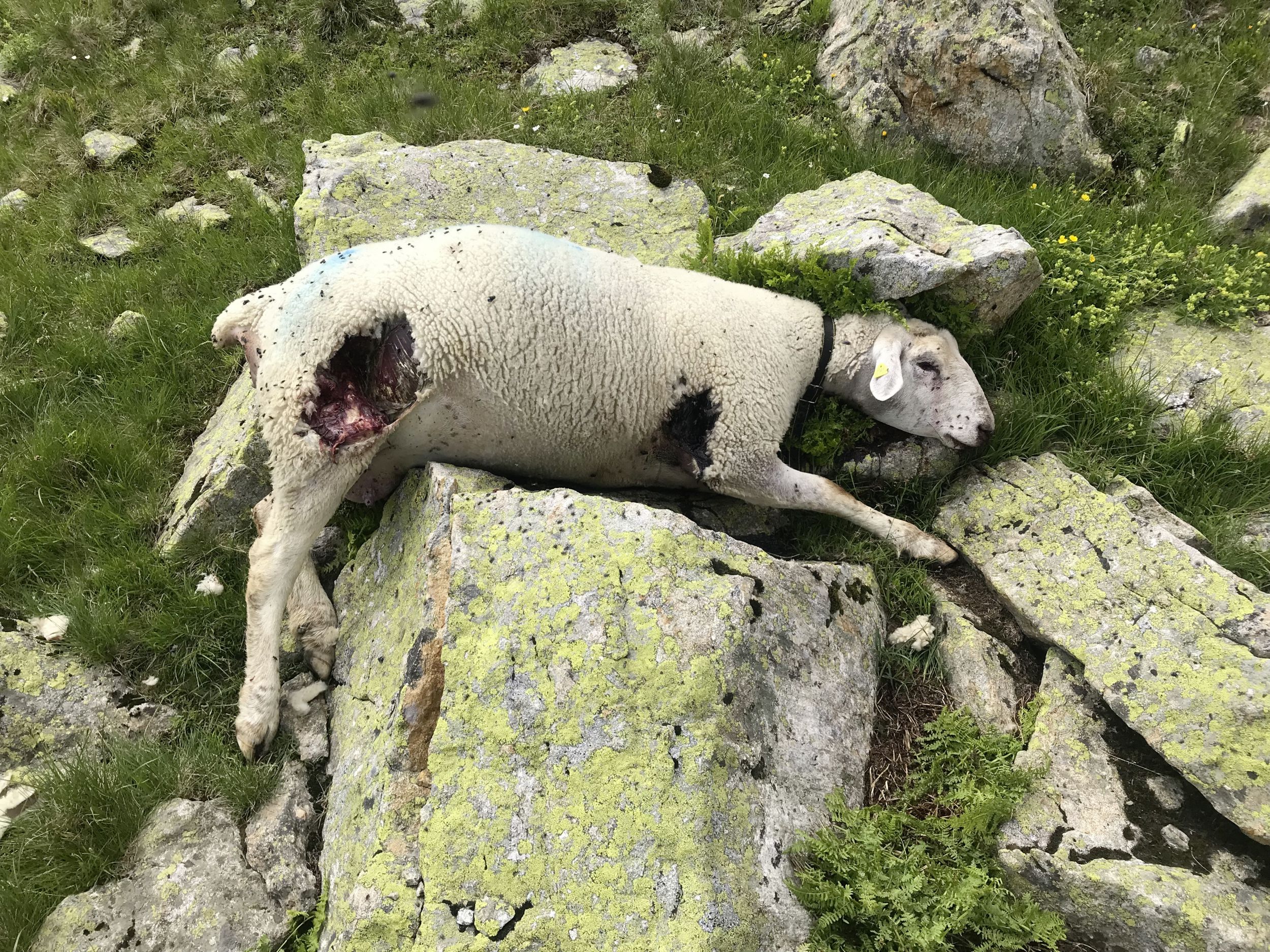 Schwer verletzt, aber lebendig. Die schweren Verletzungen verunmöglichten aber eine Behandlung, so dass es auf der Stelle erlöst werden musste. Also 4 tote Schafe. Idyllische Alpenwelt. Wir haben per Heli nach weiteren toten oder verletzten Tieren gesucht, aber keine mehr gefunden. Vermeintlich.