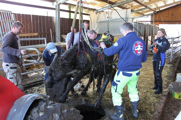 Büxt der Muni aus, fällt das Rind in die Güllegrube oder liegt die Kuh fest, hilft der Grosstierrettungsdienst. Er macht das mit professioneller Ausrüstung – und für die Bauern zu einem reduzierten Tarif.