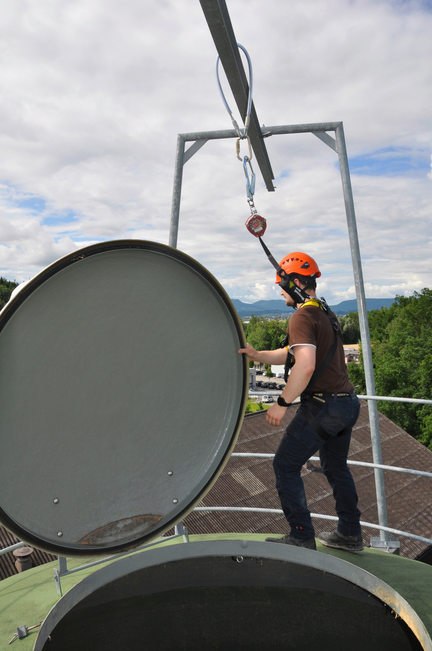 Mit folgenden Schutzmassnahmen können sich Personen auf dem Silodach vor einem Absturz nach aussen oder ins Siloinnere sichern: