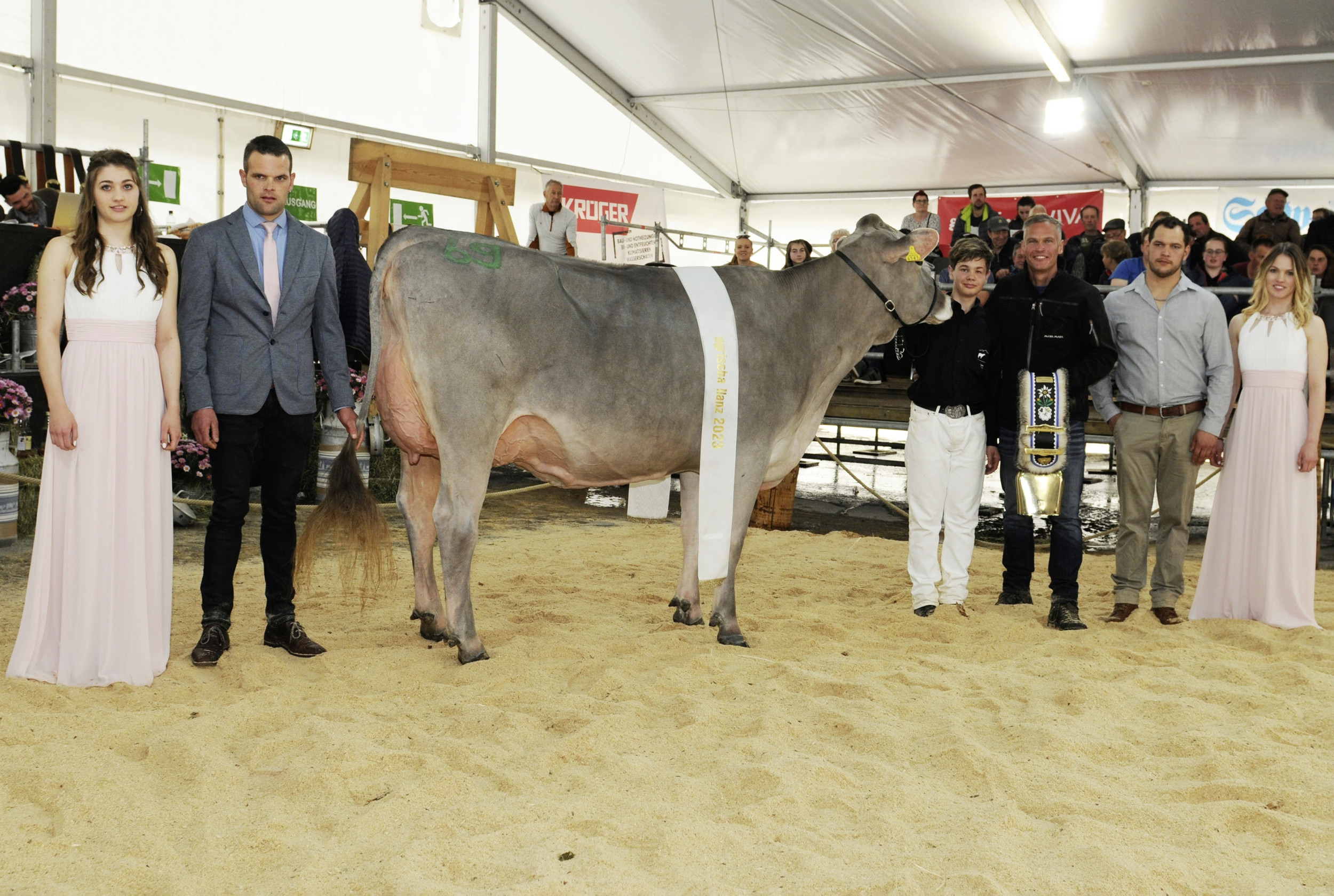 Swizzero Berna von Renzo Blumenthal (3. von rechts) gewinnt die Kuhakrobatik 2022.