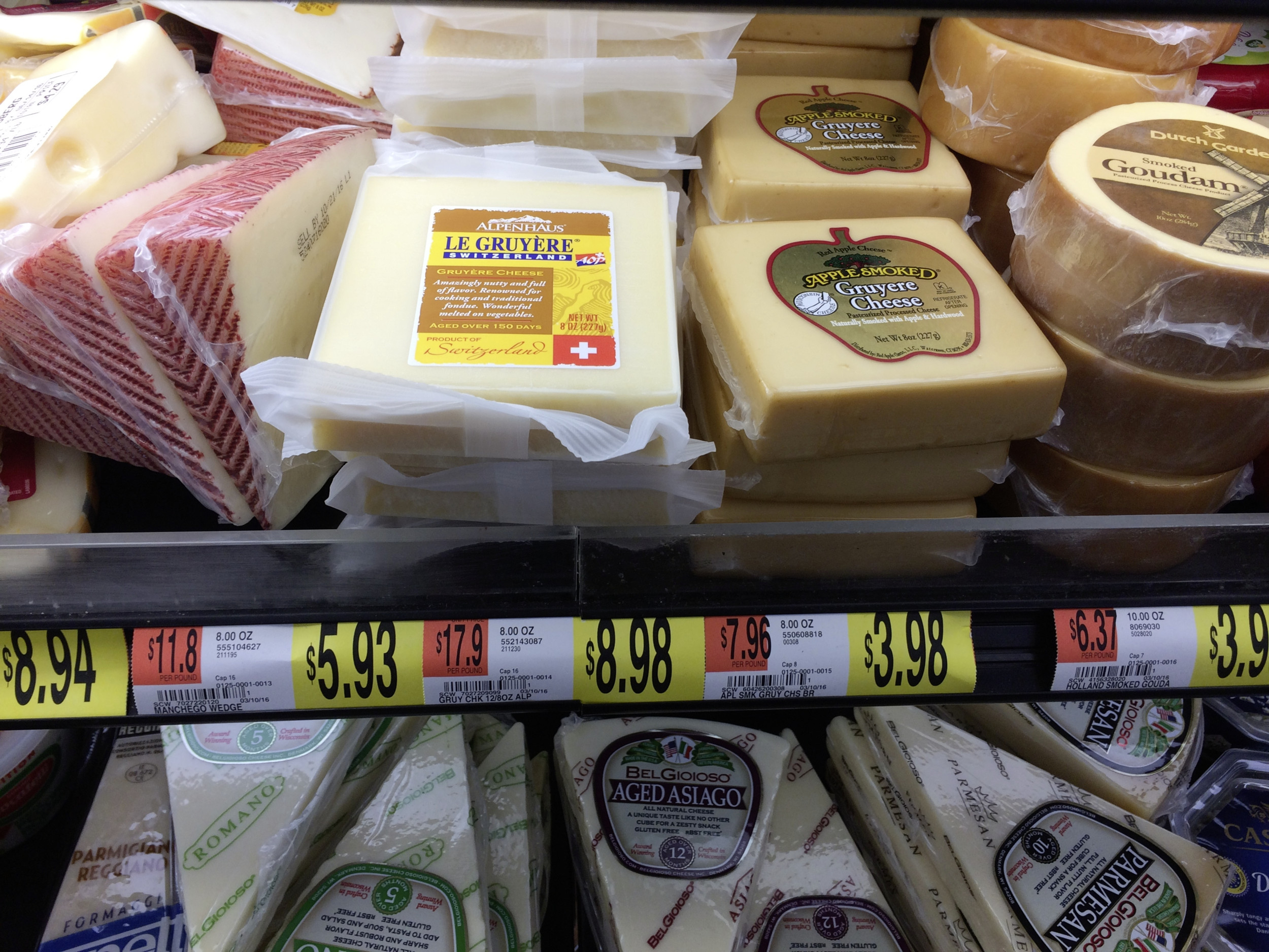Im Ausland ist die Konkurrenz gross. Im Bild ein Schweizer Le Gruyère AOP neben einem Gruyere Cheese aus den USA.