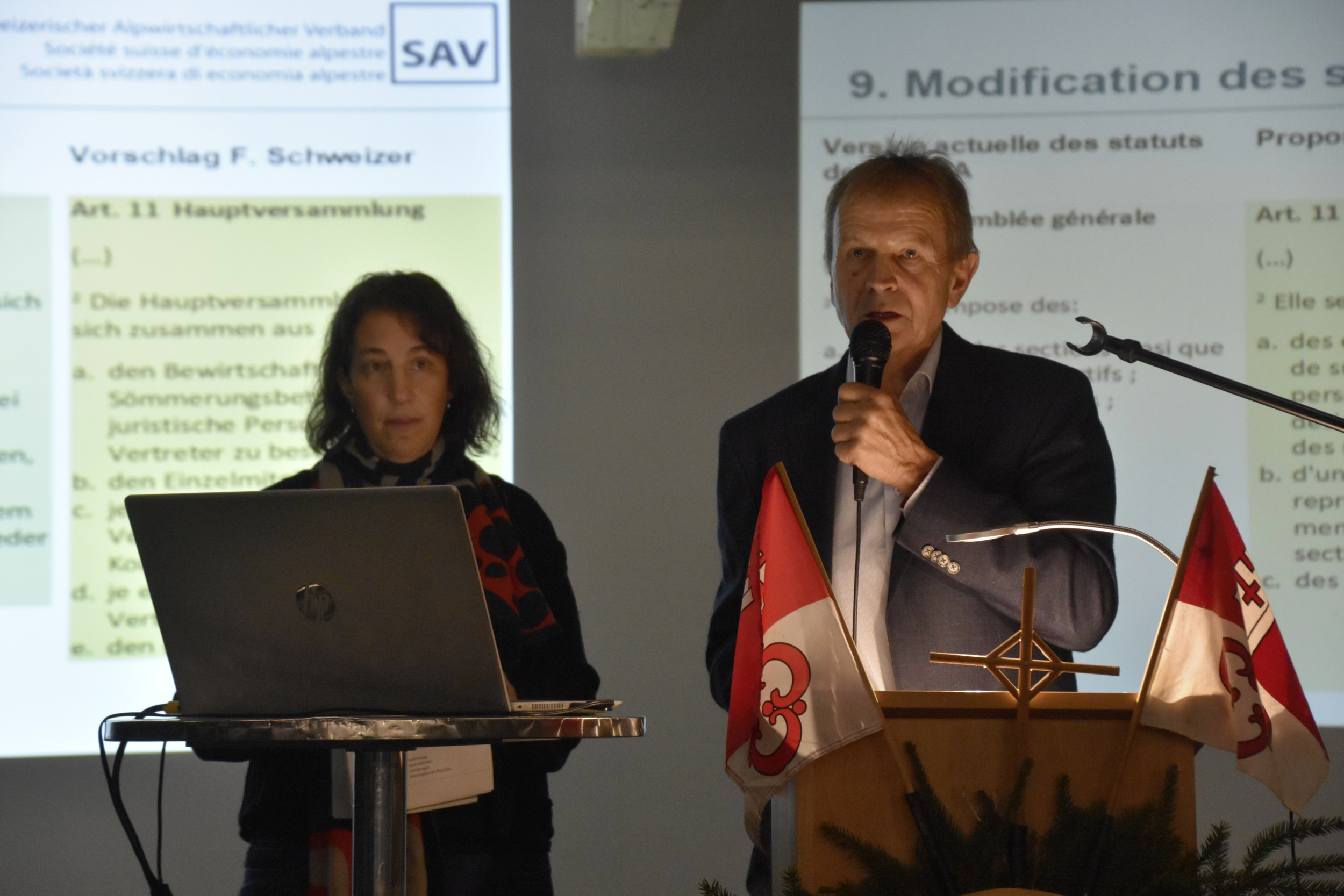 Wenn ein Betrieb diese bezahlt, wird er automatisch direkt Mitglied beim SAV und erhält an der Hauptversammlung ein Stimmrecht. Kollektivmitglieder und Einzelmitglieder haben je auch ein Stimmrecht. So werden die Bewirtschafter die grosse Mehrheit der Stimmrechte haben. SAV-Präsident Erich von Siebenthal und SAV-Geschäftsführerin Selina Droz hatten zusammen mit dem Vorstand und mit den Sektionen eine entsprechende Statutenrevision vorbereitet und fanden dafür an der Hauptversammlung unter Tag im Schiesssportzentrum Brünig Indoor einstimmige Zustimmung.