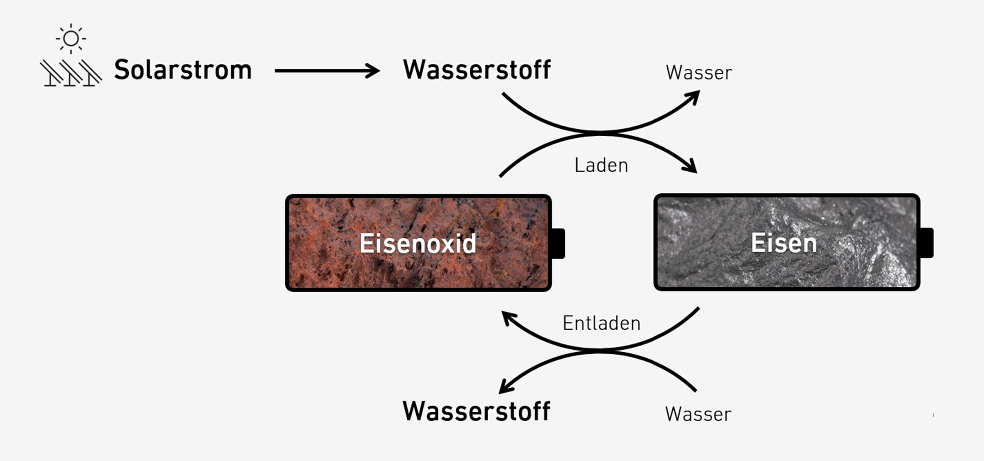 Die Idee dahinter: Der Wasserstoff und dann das Eisen könnten im Sommer mit überschüssigem Solarstrom hergestellt und im Winter wieder in Strom oder Wärme umgewandelt werden.