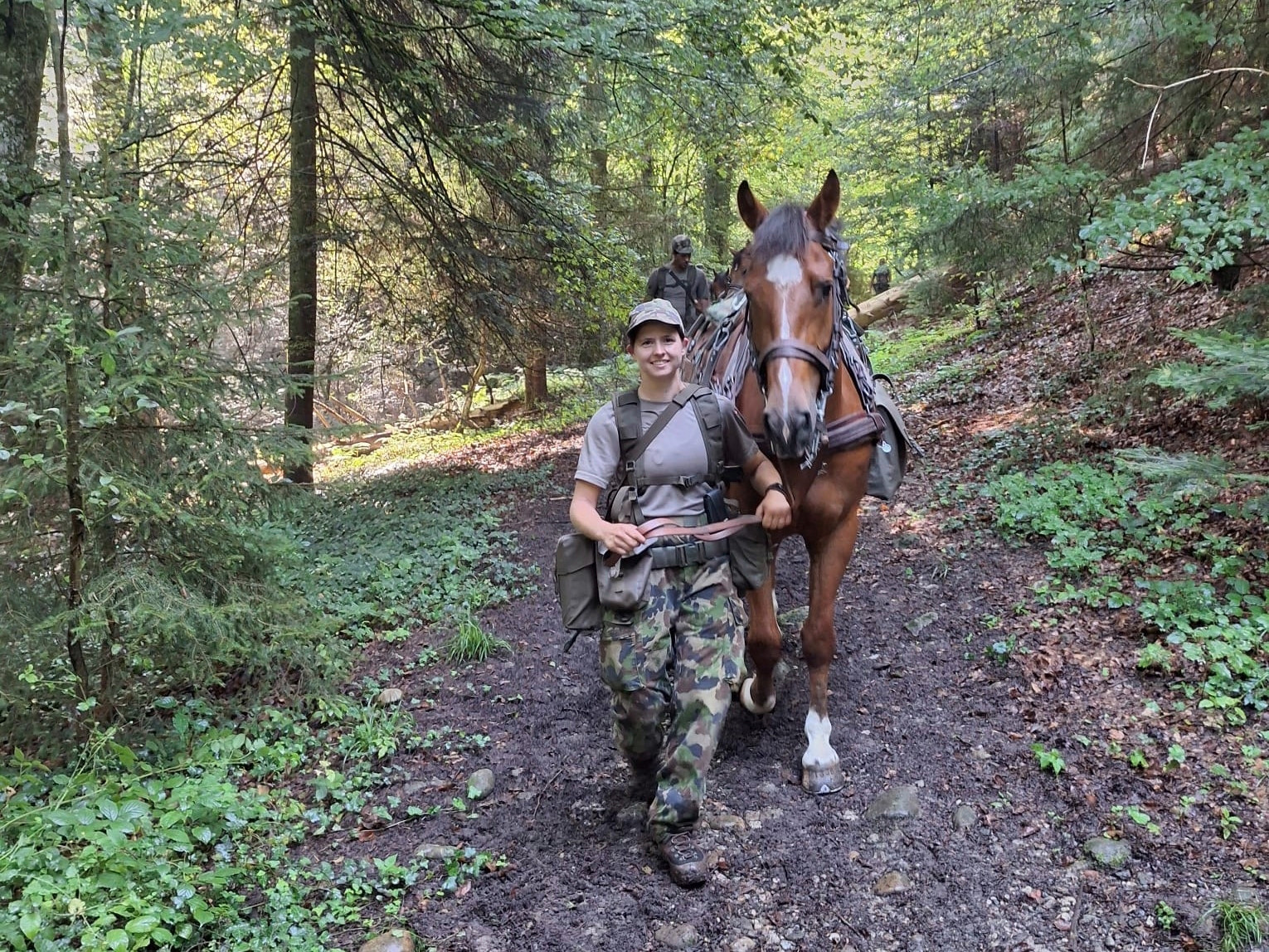 Die Tatsache, dass mich das Bastgeschirr mit den vielen Riemen zusätzlich herausfordert, bringt mich zu einem Gespräch mit dem Fachausbildner des Trains, unserem Adjutanten. Er fordert mich heraus, weiter dranzubleiben, es falle bekanntlich kein Meister vom Himmel. Zudem finde grundsätzlich keine Selektion mehr während der Fachausbildung statt, es sei denn, es wäre zum Wohle der Tiere. Das wäre bei mir jedoch nicht der Fall. Er halte mich für genügend kompetent, ein Pferd zu führen.