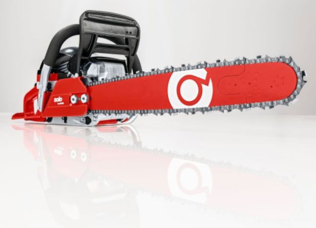 Zum neuen Markenzeichen nach der Übernahme der Solo-Motorsägen-Produktsparte durch die Firma Al-Ko gehören ein rotes Schwert und ein neues Logo mit rundem Signet.