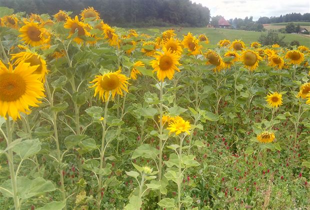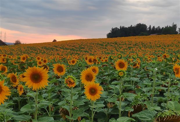 Weil die Sonnenblume eine derart faszinierende Pflanze ist, haben wir ihr unseren aktuellen Bildwettbewerb gewidmet. Einen Sieger aus 35 Teilnahmen auszumachen, war sehr schwer, traf doch ein Bild schöner als das andere bei uns ein. Letztendlich überzeugte die Aufnahme von Martina Jucker aus Weisslingen ZH. Sie darf sich mit ihrem Sonnenblumenmeer bei wunderschöner Stimmung in dieser Woche als Gewinnerin feiern lassen. Herzlichen Glückwunsch!