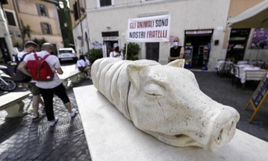 Kunst oder Angriff auf den Tierschutz – für eine solche Debatte hat die Skulptur eines Spanferkels in Rom gesorgt.