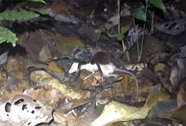 Die Forscher entdeckten die tellergrosse Vogelspinne Pamphobeteus sp. und ihr Opfer zufällig bei einem nächtlichen Streifzug durch einen Regenwald in Peru. Die Spinne habe die Beutelratte zunächst im Genick festgehalten. Das Säugetier habe sich dann noch etwa fünf Minuten leicht bewegt. Danach habe die grosse Spinne es zu einem Baum gezogen und sei verschwunden, als sie die Forscher bemerkt habe.