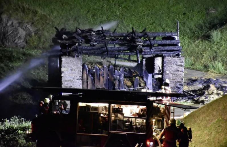 Am Samstag kurz nach 21 Uhr ging bei der Einsatzleitzentrale der Kantonspolizei Graubünden die Meldung über einen Stallbrand, in Vals im Gebiet Ober Büni, ein.
