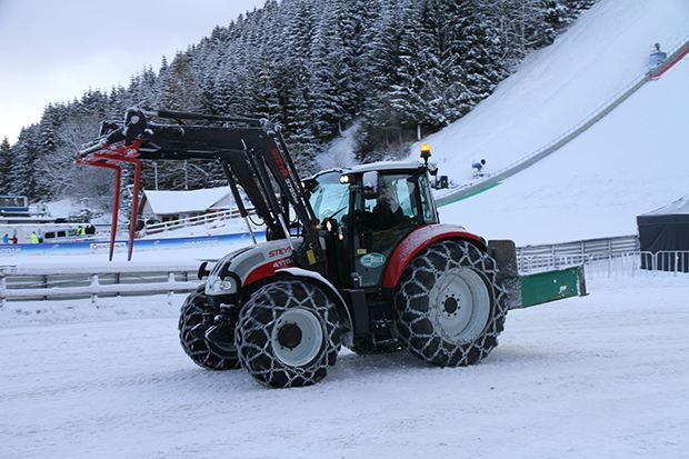 Bereits einige Tage vor dem Skiflug-Wettbewerb waren Traktoren von Steyr im Winterdienst rund um den Kulm im Einsatz. Ab dem Eröffnungsdonnerstag wurde der Wettbewerb dann mit sechs Traktoren unterstützt. "Mit zwei 4115 Multi sowie einem Profi 4130 CVT, einem 6145 CVT, einem 6160 CVT und einem 6165 CVT waren wir bestmöglich aufgestellt", sagt Josef Penzinger, Marketingleiter bei Steyr Österreich.