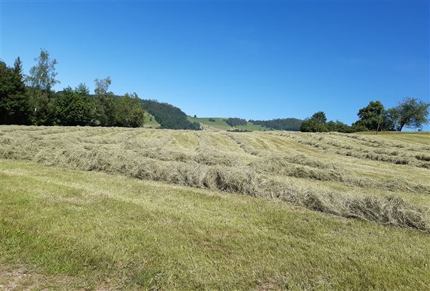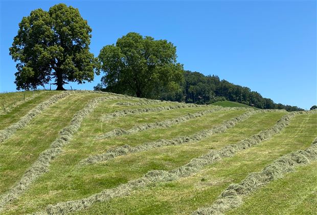 Das sommerliche Wetter wurde in den vergangenen Tagen und Wochen schweizweit genutzt, um Ökoheu und Emd zu ernten. Dabei konnte gutes Futter produziert werden. In dieser Woche haben wir für unseren Bildwettbewerb das schönste Heuschwaden-Feld gesucht.