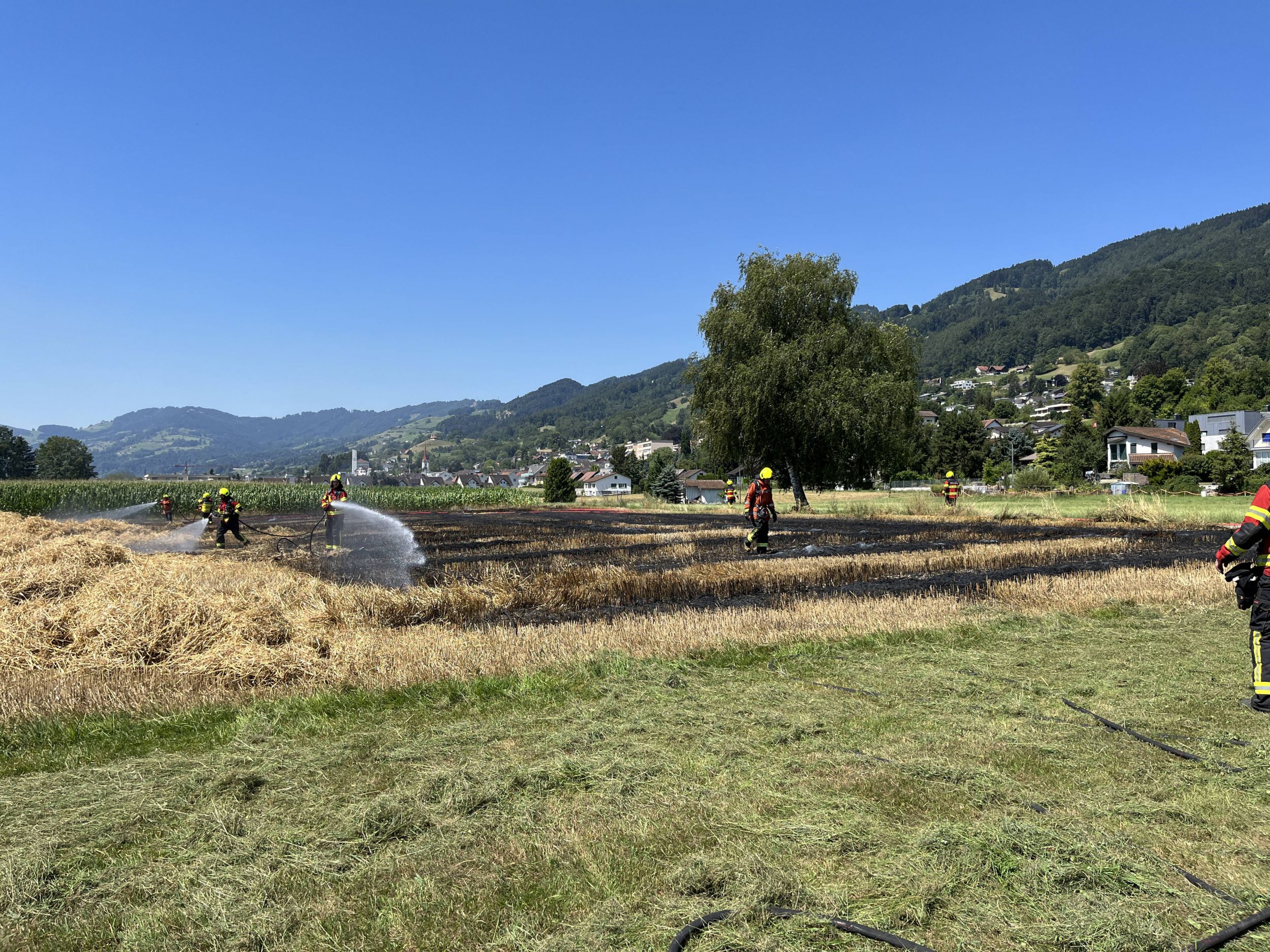 Kurz vor 12 Uhr wurde der kantonalen Notrufzentrale der Brand des Getreidefelds gemeldet. Das Feuer breitete sich im Stroh rasch aus. Die Feuerwehr konnten den Brand löschen. Der Sachschaden wird auf 1500 Franken beziffert.
