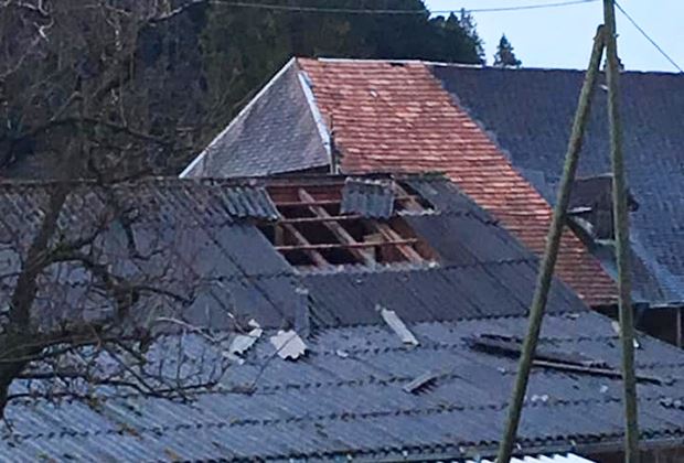 Eindrücklich ist auch das Leserfoto von Sonja Vetsch aus Rikon ZH. Die gefallene Tanne verfehlte nur knapp das Dach, und die davorstehenden Zwergziegen kamen mit einem Schrecken davon.
