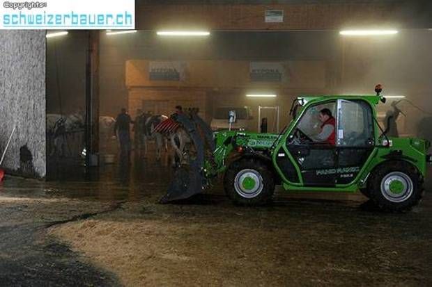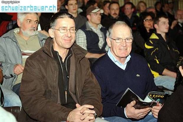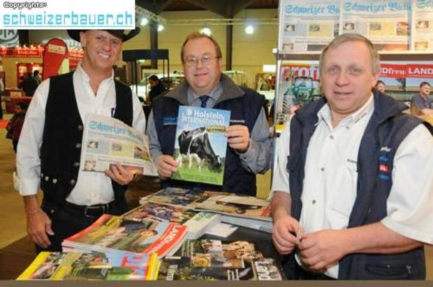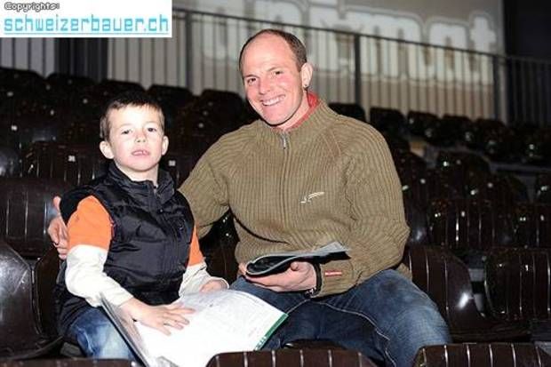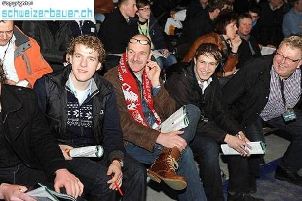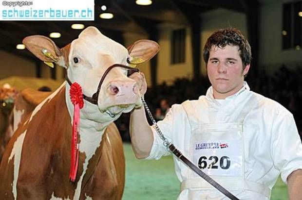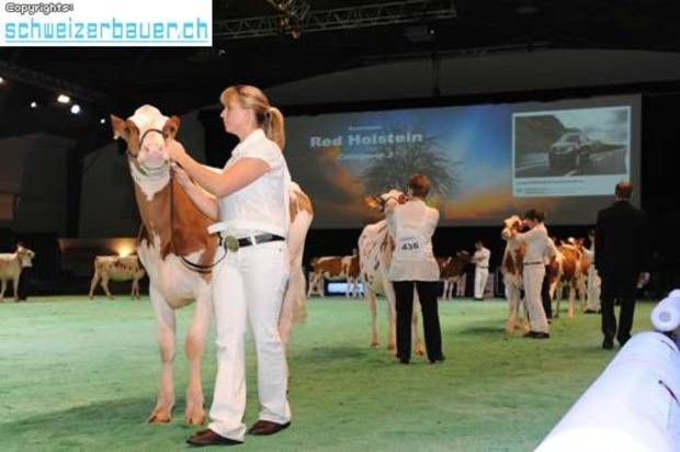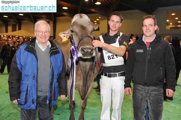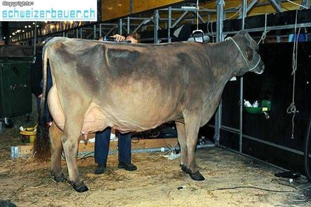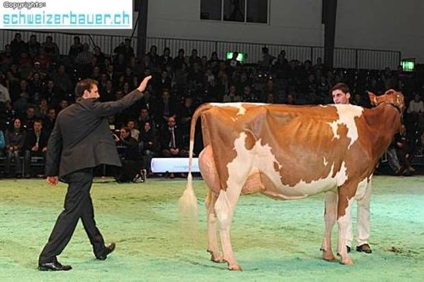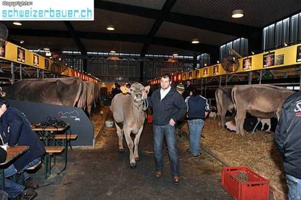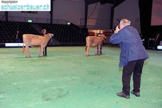 Christoph Gerber macht Abo-Werbung für seine Fachzeitschrift Bovina. Am Stand von Holstein-Quebec. RH-Zuchtkoryphäen verfolgen gespannt die Schau: Markus Gerber, Bernhard Ryser Walter Lüthi und Fritz König. Gäste aus dem Ausland: Die glücklichen Bauern aus Twente, Holland. Bertrand Roux und Charly Dorthe. Der stolze Vater Jean-Claude Frossard schaut zu, wie sein Sohn Roger richtet. Er mache es gut, findet er. Zum Einschlafen war die Ausstellung definitiv nicht! Dani Hofstetter und Lucas Casanova von Braunvieh Schweiz. Emil Zwingli mit Braunviehkönigin Barbara Rohrer. Hinter den Kulissen sind unzählige Helfer im Einsatz. Es geht ab an die BS-Ausstellung! Ueli Stauffacher und Karin Bless am Frühstücken. Etwas gegen den Durst. Richter Donald Dubois konzentriert bei der Arbeit. Angelo Pozzatti mit Thomas Feitknecht. Mit Pappi an der Swiss Expo! Spitzen-Braunviehzüchter am Diskutieren. Martin Rust scheint vom Fotografen etwas überrascht worden zu sein. Wie jedes Jahr ist Beat Imfeld als Fotograf für Braunvieh Schweiz im Einsatz. Rhythm Acqua, die Vorjahressiegerin der Brown-Swiss-Rasse, erhält vor der Ausstellung den letzten Schliff. Wer ist wohl die Stärkere? Hansheiri Wichser und Bruno Käslin. Chächi Bärner Manne! Eine einmal etwas andere Perspektive... Richter Roger Frossard schreitet zur Tat! Tobias Schuwey mit Schuwey Classic Roxy. Eindrückliche Euter! Die grosse Siegerin der Brown-Swiss-Ausstellung: Schmibachs Collection Corella, Beni Schmid, Schüpfheim. Zwei bekannte Grössen aus der Fleckvieh-Welt: Albert Bachmann und Joseph Crettenand. Roger Frossard amtet als Richter bei der Red-Holstein-Schau. Schweizer-Bauer Aboverkäufer Roman Principe mit Christoph Grosjean von den Schweizer Milchproduzenten. Tino Gisler, GS Alliance, Ruedi Haudenschild, Chefredaktor Schweizer Bauer und Schweizer Bauer-Aboverkäufer Roland Baumberger.