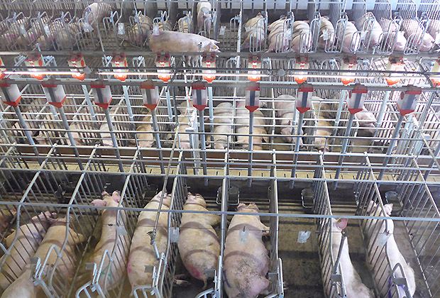 Entlang der von idyllischen Alleen gesäumten Landsträsschen in Brabant steht alle paar Hundert Meter einer dieser Grossbetriebe. Die gut 12 Millionen niederländischen Schweine werden in etwas mehr als 6'000 Ställen gehalten, der Durchschnittsbestand liegt also bei rund 2'000 Tieren.