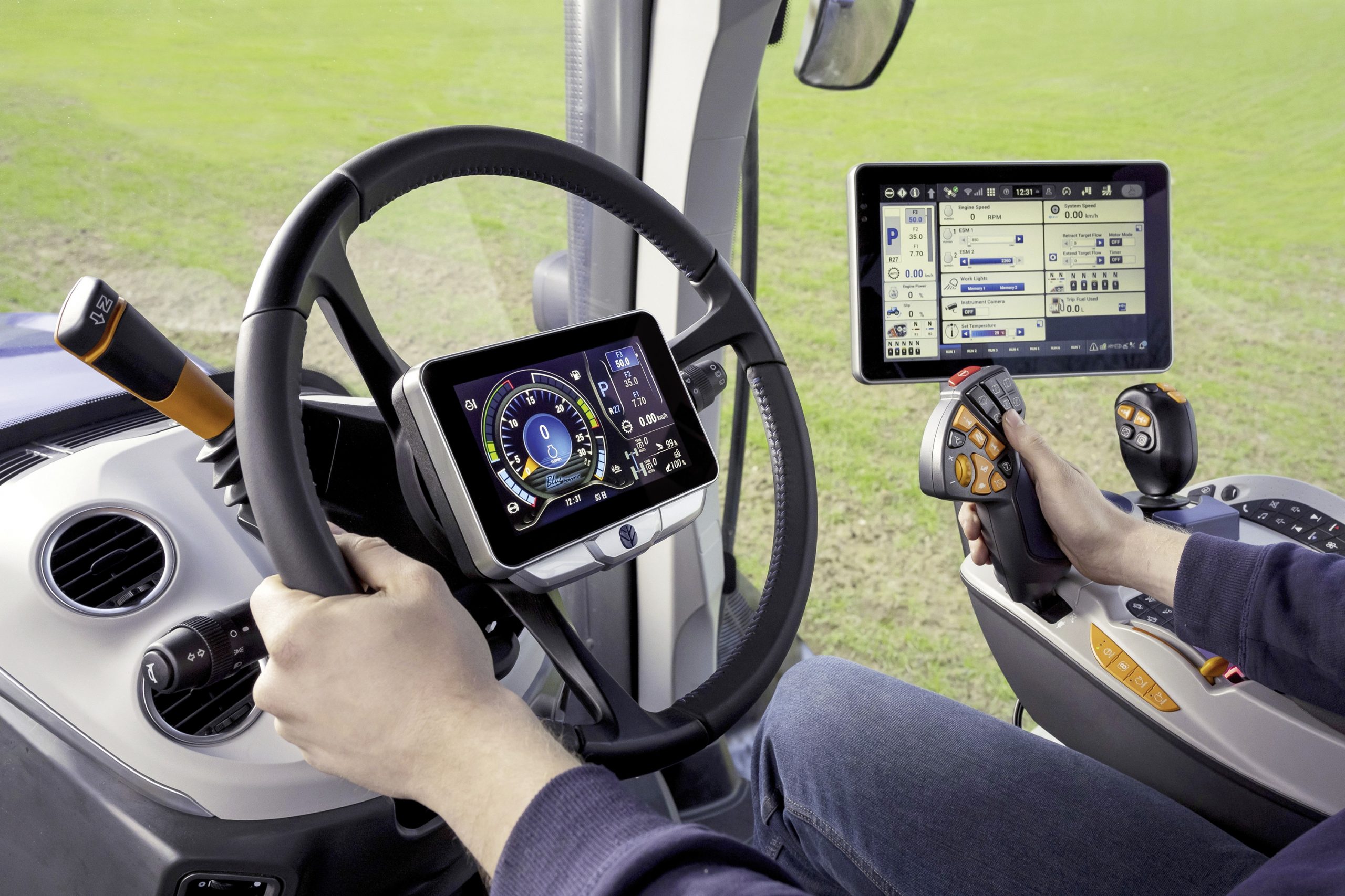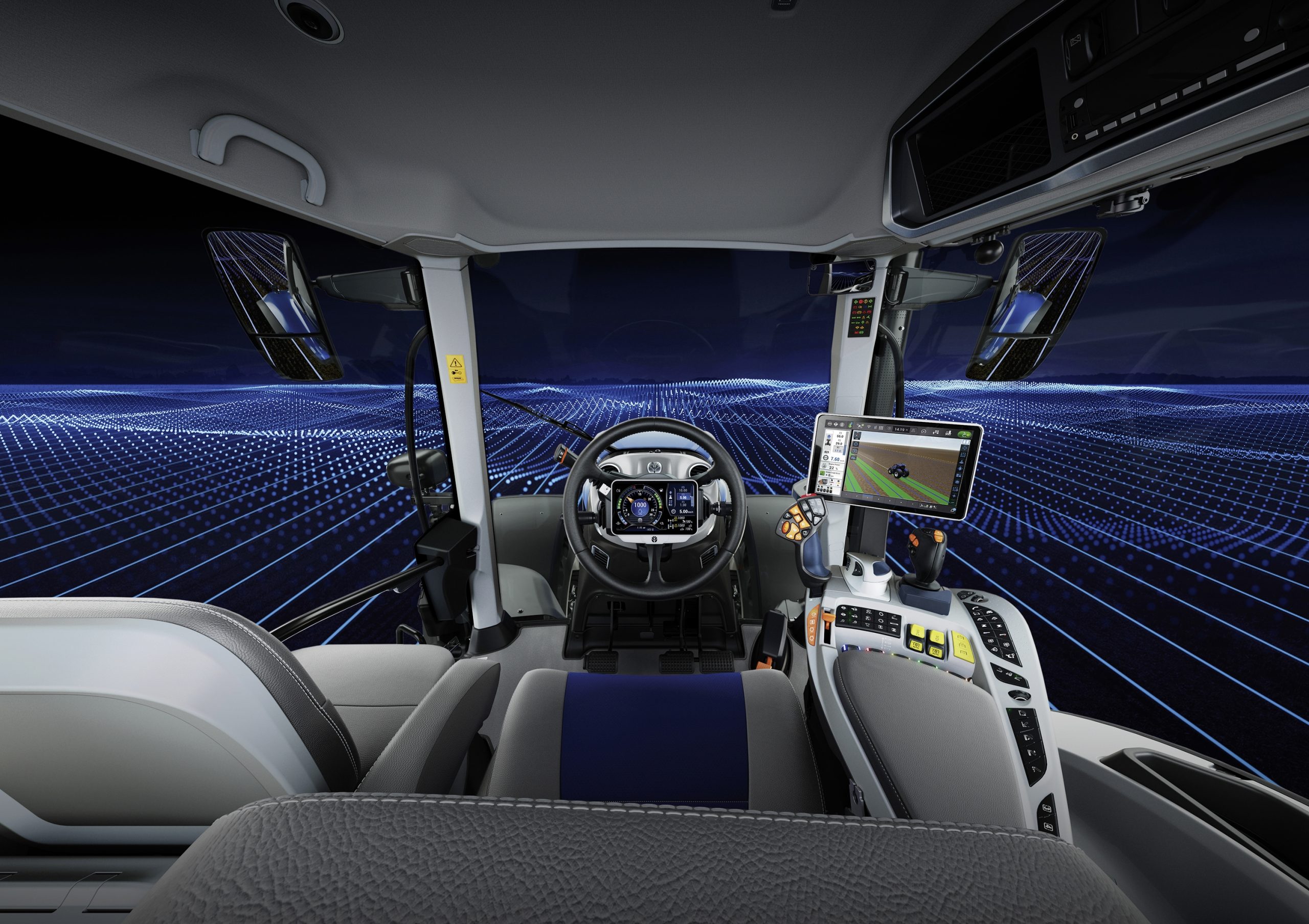 New Holland legt ihre T7-Reihe neu auf. Das CentreView-Display in der Mitte des Lenkrads, eine Branchenneuheit, hat der Fahrer direkt im Blick. Die neue Kabine soll dem Fahrer ein neues Komforterlebnis bieten.