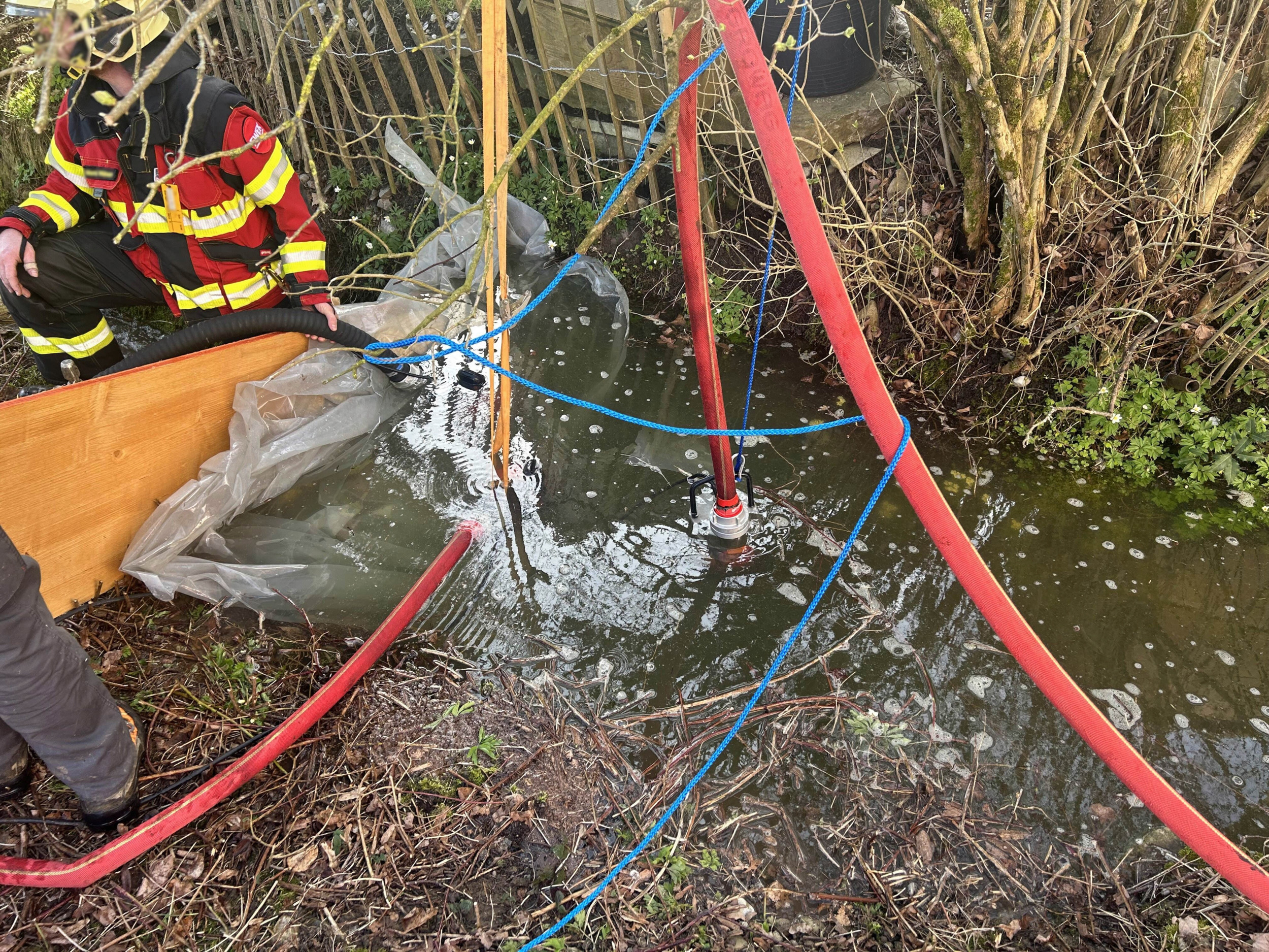 Mit einer Wassersperre wurde die Jauche aufgehalten.