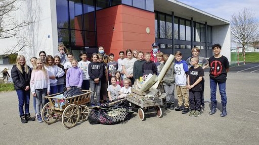 Am Aktionstag machten sich die Klassen gut ausgerüstet mit Leuchtwesten, Handschuhen, Greifzangen, Leiterwägeli und Abfallsäcken auf den Weg, um rund um Langrickenbach Abfall einzusammeln.Von ganzen Glasscheiben über Baumaterialien, Zigarettenstummel und Alubüchsen, bis hin zu einer halbvollen mit Zapfen verschlossenen Weinflasche, wurde entlang der Strassen etliches zusammengelesen. Und völlig verwunderte Kinder fragten sich: Warum werfen die Leute alle die Sachen so achtlos weg?, schreibt der Verband.
