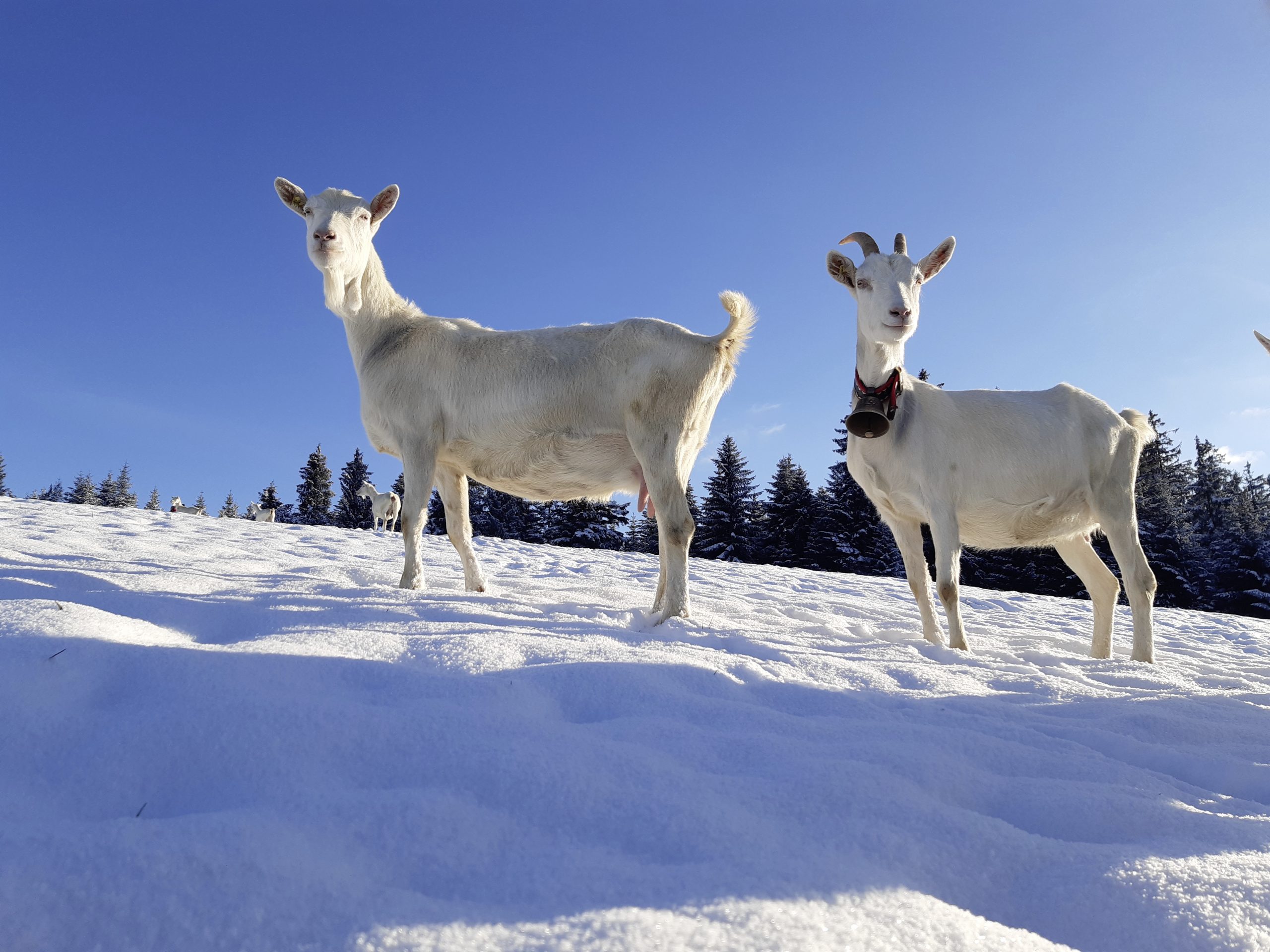 Die Schweiz gleicht vielerorts einem Winterwunderland. Also nichts wie raus, sowohl Mensch als auch Tier. Anreiz dazu gibt einerseits das Tierwohlprogramm Raus. Den Tieren wird dabei Auslauf im Freien gewährt, womit die natürlichen Bedürfnisse der Tiere gedeckt werden.