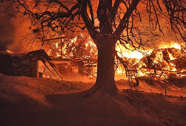 Dieses brannte fast vollständig aus. Glücklicherweise wurde durch die Flammen niemand verletzt. Dem Besitzer gelang es, die Tiere ins Freie zu treiben.