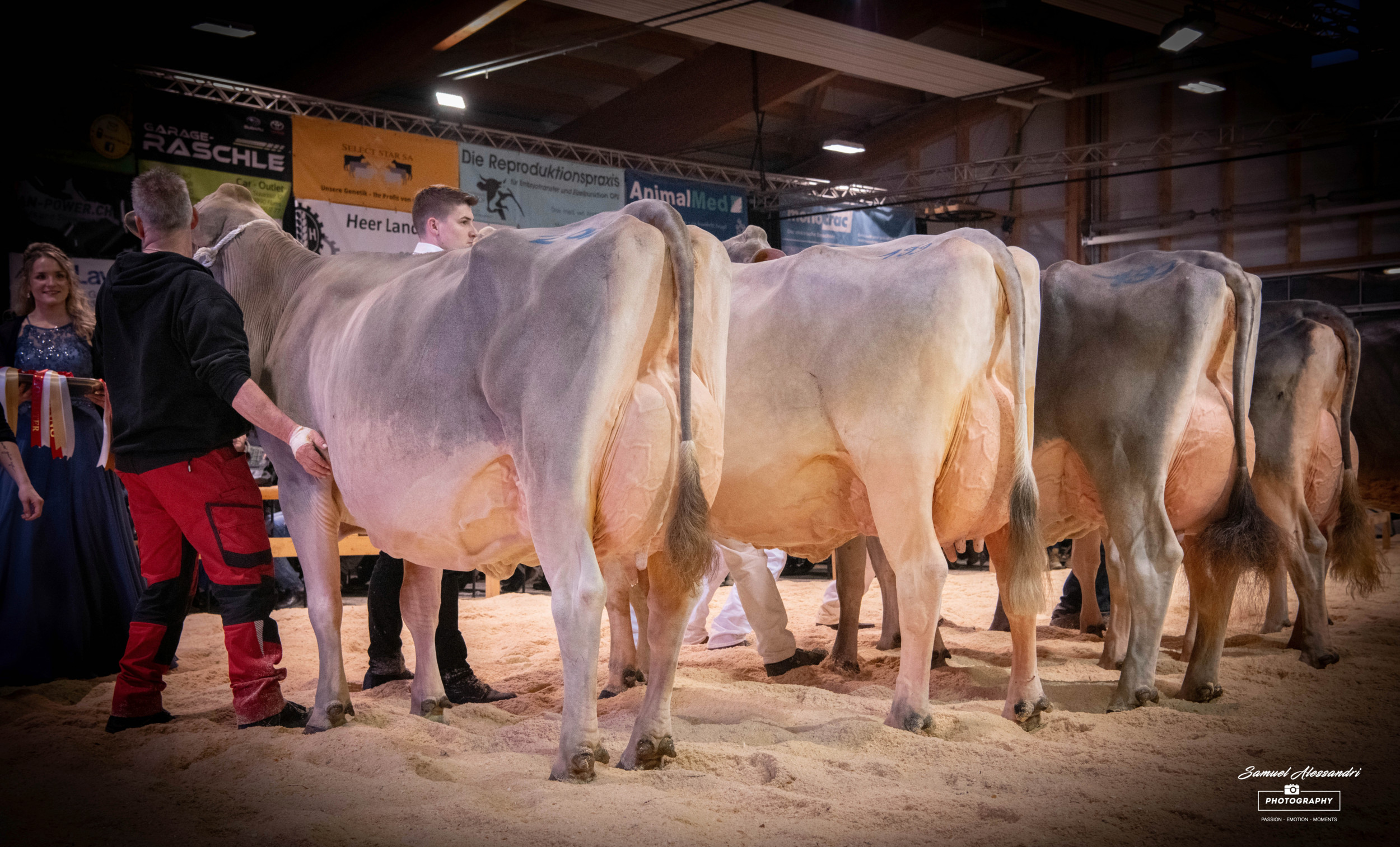 Palmira überzeugte dank ihrer Fundamentausprägung und ihrem stärkeren Mittelleib vor der Reserve-Siegerin Cadalbert’s Pete Nozza von Matthias und Melanie Vitali, Olivone TI, welche wiederum dank einigen Nuancen durch eine stärkere Oberlinie, einer idealeren Beckenneigung sowie einer etwas besseren Euterverbindung vor Cabalzar’s Swizzero Berna, ebenfalls im Besitz von Renzo Blumenthal, überzeugen konnte.