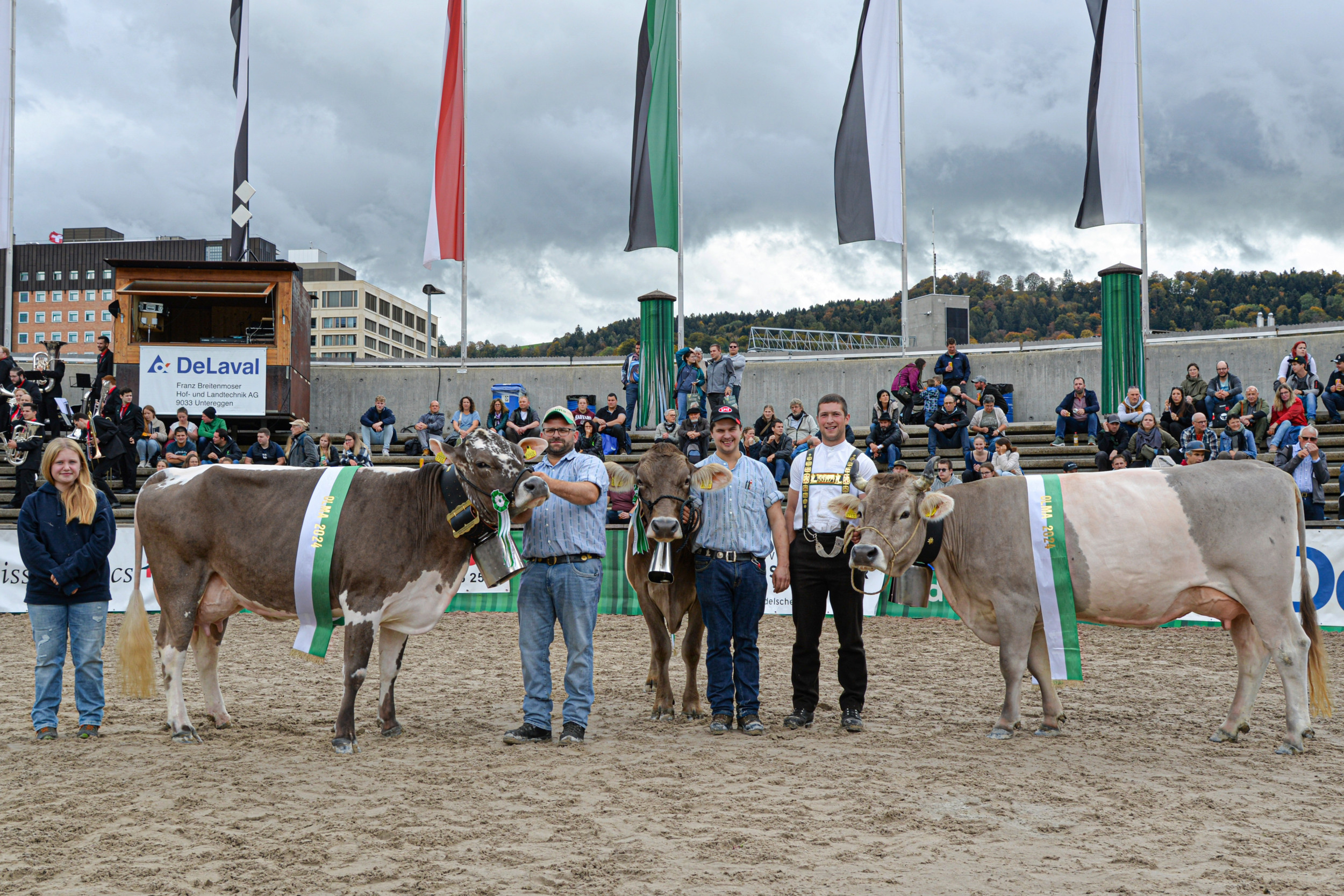 Die Tagessiegerin Blüem-Zeichnung Dora neben dem Exterieurchampion Goertli und der Gurtsiegerin Murmel an der letztjährigen Schau.