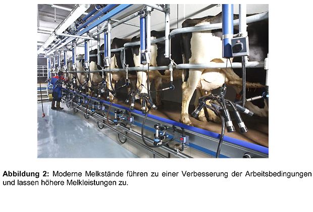Die Arbeitsabläufe beim Melken setzen sich zusammen aus Routinezeiten, Rüst- und Reinigungszeiten, Wegzeiten und Wartezeiten. Insbesondere bei den Routinezeiten kann durch den gezielten Einsatz von verfahrenstechnischen und arbeitsorganisato-rischen Hilfsmitteln Arbeitszeit eingespart werden. Die Automatisierung von häufig wiederkehrenden Arbeitsvorgängen ist hierbei besonders zeitsparend.