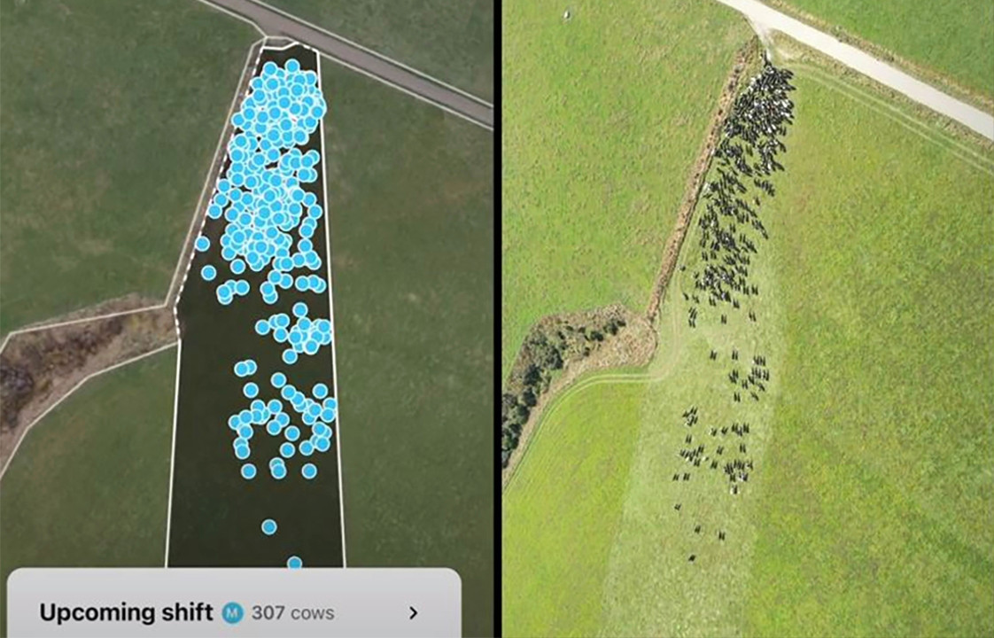 Die virtuelle Zaungrenze wird digital verschoben. Die Kühe warten bereits am Tor. (Abbildung: Youtube «Frei Dairy», adapt.)