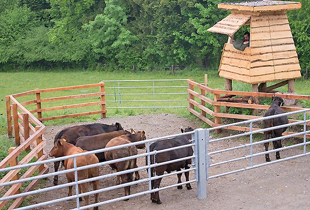 Einen anderen Weg hat Georges Blunier in Paspels GR eingeschlagen mit der Hofschlachtung. Er fixiert ein Tier im Fressgitter und tötet es mit einem Bolzenschuss – dafür ist kein Jagdpatent nötig, aber wie für die Weideschlachtung ein Transportwagen, ein Schlachthaus mit Metzger in der Nähe und natürlich eine kantonale Bewilligung.