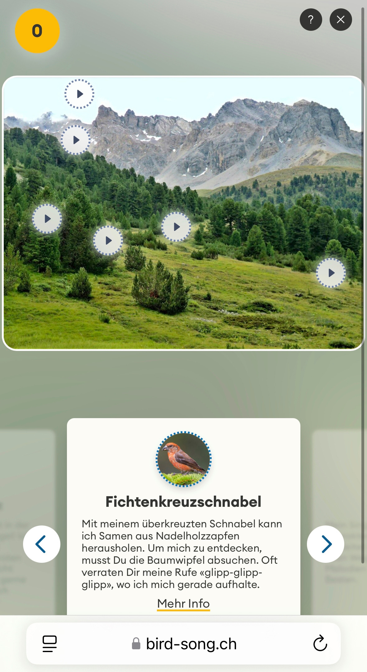 Die Lernplattform bietet über 200 Porträts von Vogelarten der Schweiz, die jeweils mit den charakteristischen Gesängen und Rufen sowie nützlichen Informationen zur Lebensweise der Vögel versehen sind.