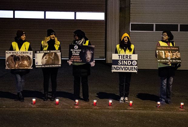 Die Anlieferung zum Schlachthaus wird per Social Media dokumentiert und verbreitet. Die Demonstranten wollen sich ausdrücklich für die Tiere einsetzen. "Keinesfalls richtet sich der Protets gegen die Fahrer der Tiertransporter oder gegen die Mitarbeiter des Schlachthofs", heisst es weiter. Es handle sich um eine vegane Bewegung, die "liebesbasiert" und friedlich sei.