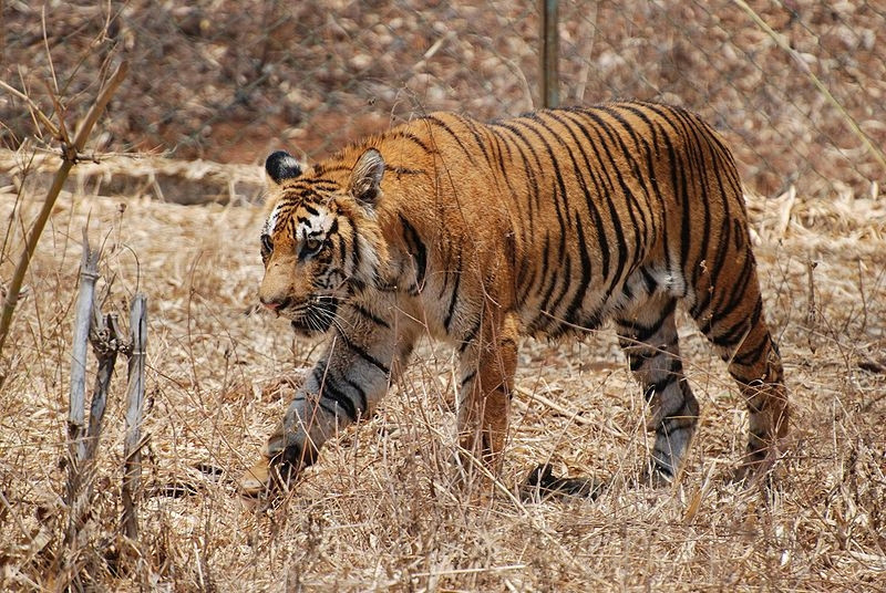 Der Bengaltiger, auch Königstiger genannt, ist eine vom Aussterben bedrohte Art und Indiens Nationaltier. Da die Tiger geschützt sind, dürfen sie nur getötet werden, wenn sie zuvor offiziell als «Menschenfresser» eingestuft worden sind. Die etwa 3100 Tiger in Indien machen mehr als 75 Prozent der weltweiten Tigerpopulation aus. Viele von ihnen leben in Nationalparks, die an besiedeltes Ackerland grenzen. Dies führt immer wieder zu Konflikten zwischen Mensch und Tier.