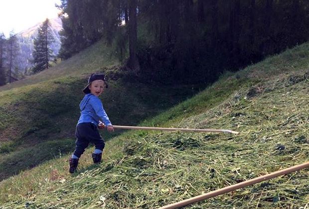 Nächstes Jahr kann Elias bestimmt schon beim Heurechen helfen.