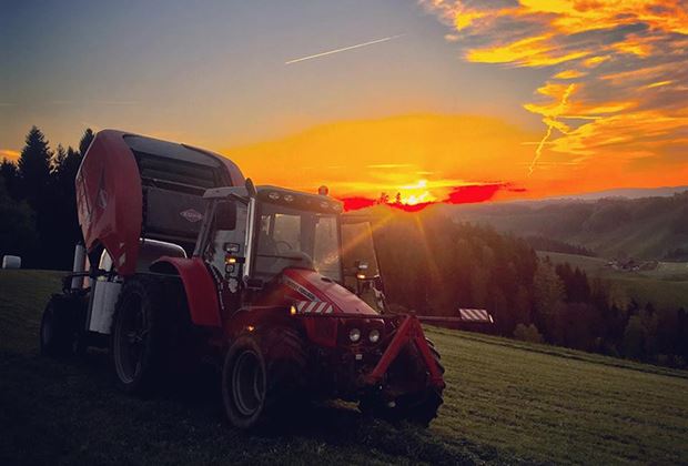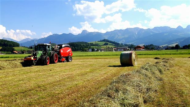 Derselbe Traktor, dieselbe Rundballenpresse, dasselbe Bergpanorama- ob da ein Duell unter Brüdern beim "Bild der Woche" ausgetragen wird? Fotograf: Michael Fankhauser, Fotograf vorher: Andri Fankhauser.