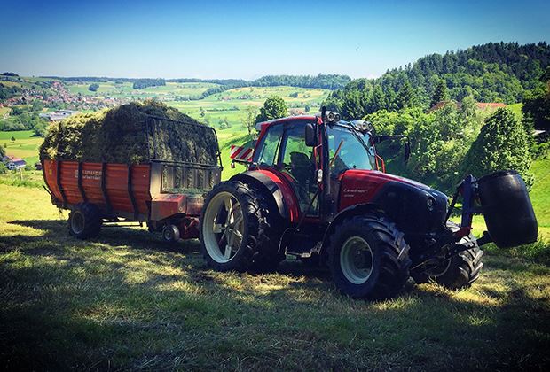 Bevor das Heu des vollbeladenen Ladewagens auf die Bühne kommt, wird in Steinhuserberg LU noch rasch fotografiert.