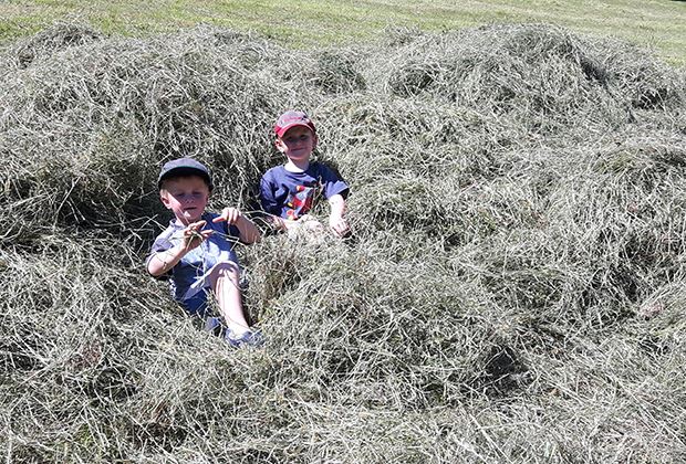 Nino ist offensichtlich (noch) ein bischen mehr für die Heueinfuhr zu begeistern, als Elias.