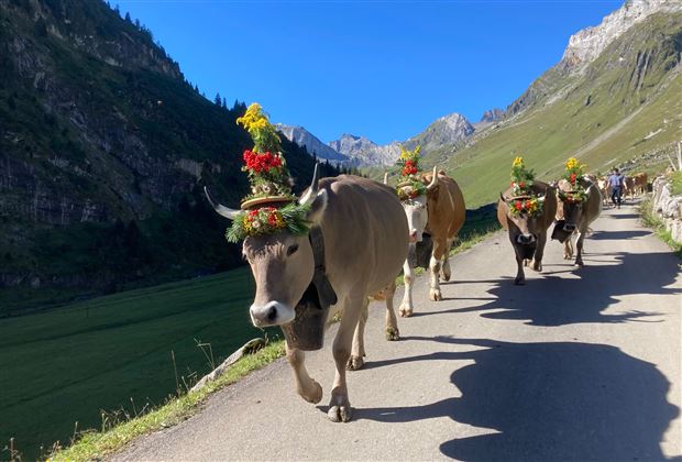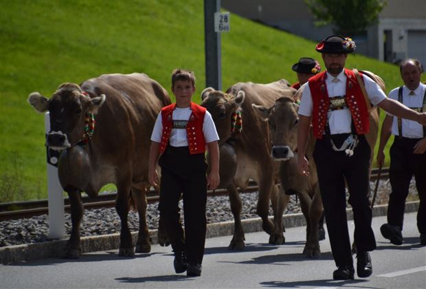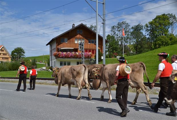Nach dem Alpsommer ziehen die Sennen mit ihren Tieren zurück ins Tal ins Winterdomizil. Für den Alpabzug werden die Tiere vielerorts mit Blumen, Glocken und Treicheln geschmückt, und die Älpler schlüpfen meist in die Tracht.